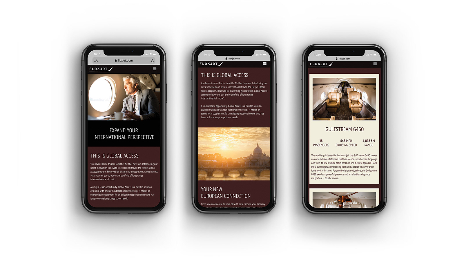 Flexjet is a private aviation company specializing in luxury travel for business and personal use. We sent out quarterly mailers and email blasts, accompanied by landing pages to highlight new aircrafts and services. This specific campaign introduced new aircrafts with global travel capabilities.